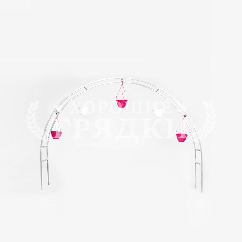 - арки для цветов разного размера. По ним можно пустить любые вьющиеся растения – от садовых роз до винограда. А дополнительно – подвесить стильные кашпо с низкорослыми цветами;